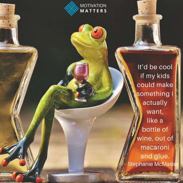 - “It’d be cool if my kids could make something I actually want, like a bottle of wine, out of macaroni and glue.” – Stephanie McMaster