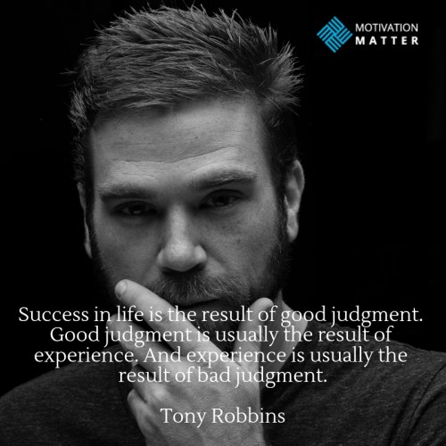 Tony Robbins, on success ,once said, “Success in life is the result of good judgment. Good judgment is usually the result of experience. And experience is usually the result of bad judgment.” In other words, you cannot achieve success without failures.